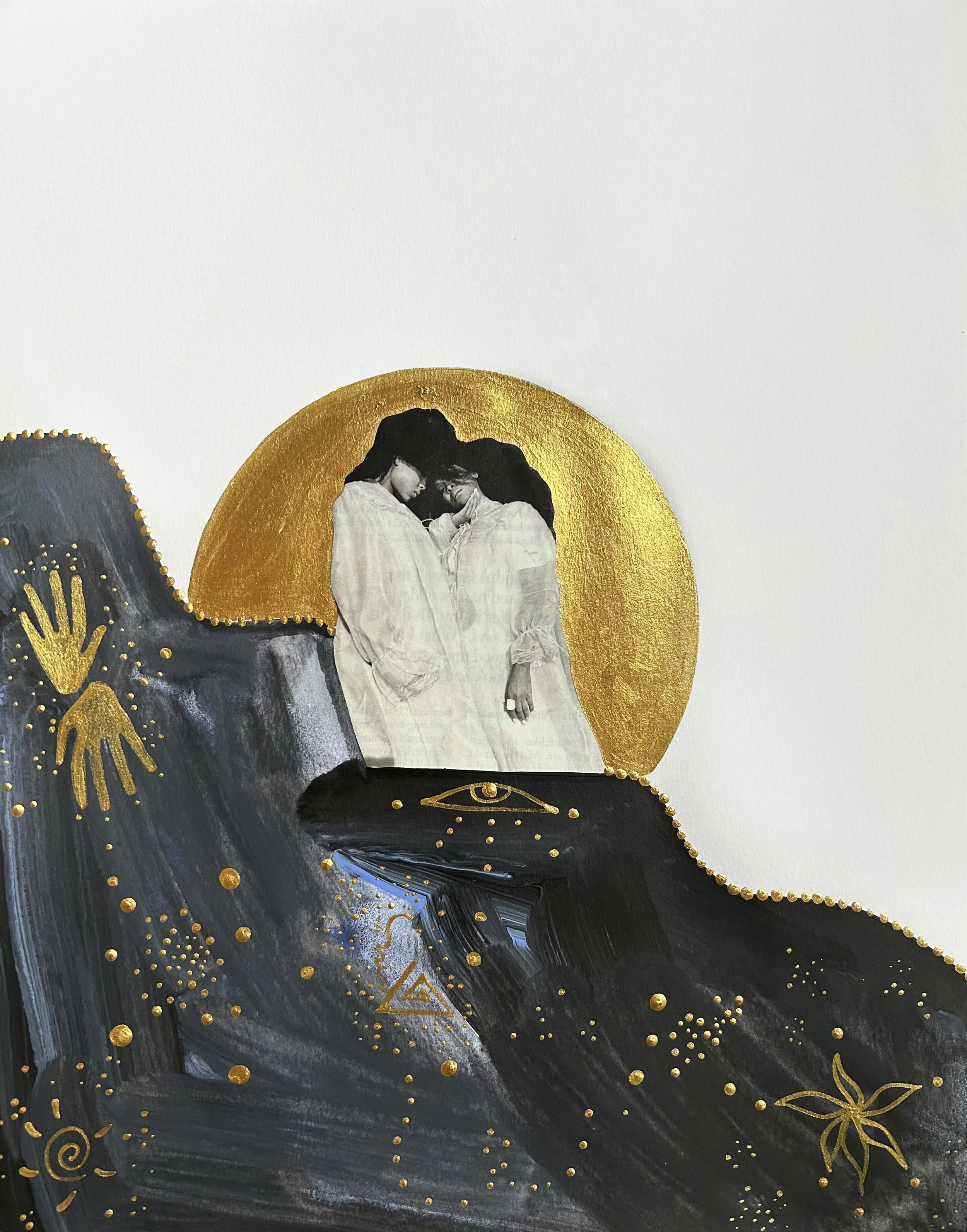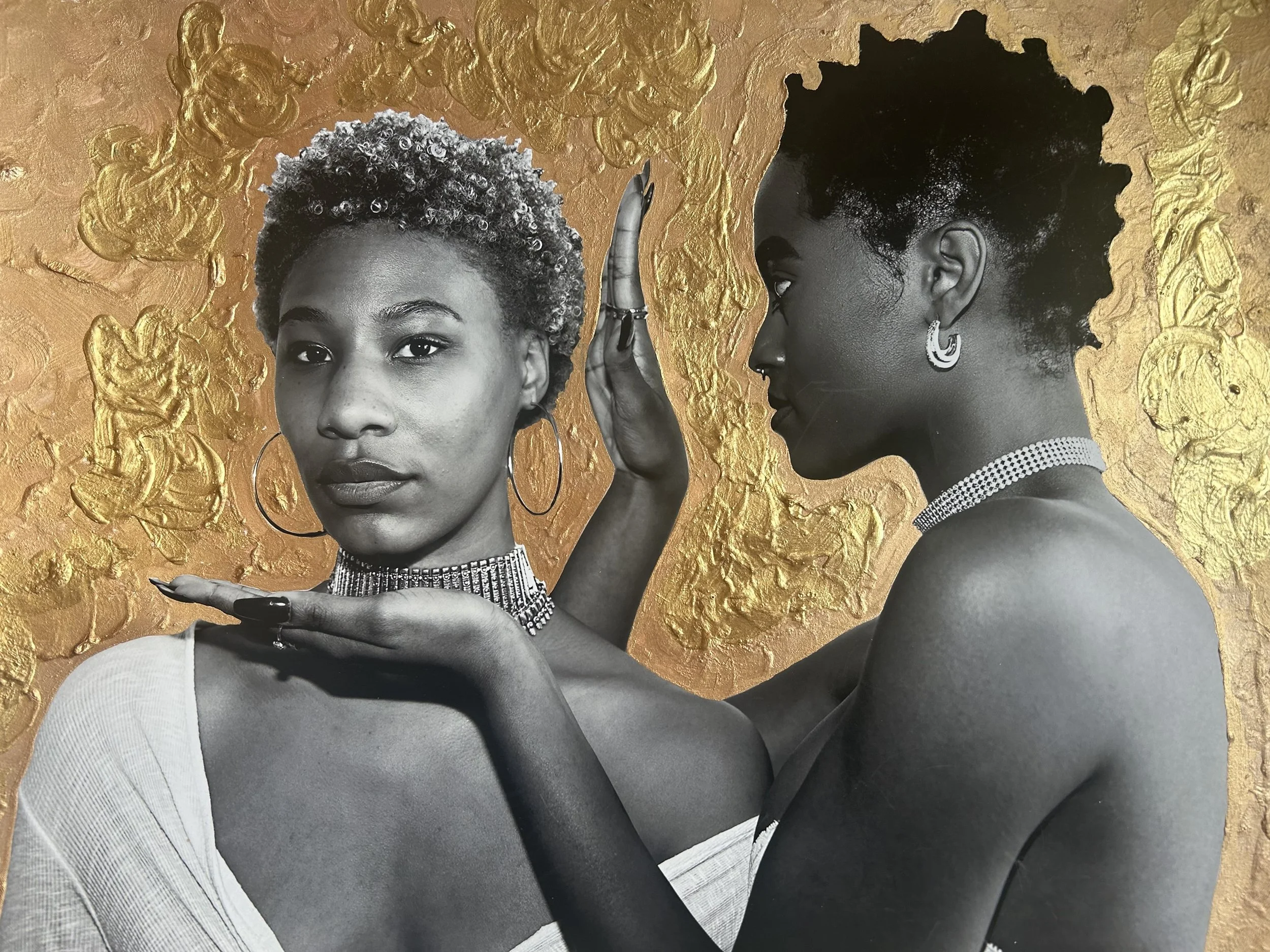 "Communication with Ancestors", Photograph acrylic and mixed media on canvas "My Sister’s Keeper", Photograph with acrylic details"Protector", Cut out from Vogue magazine with acrylic details on paper